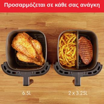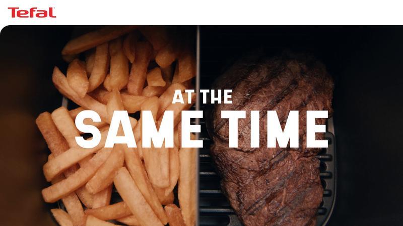 Απολαύστε νόστιμα, υγιεινά γεύματα από τη δική σας κουζίνα με την φριτέζα αέρος Tefal Easy Fry & Grill 2-σε-1 XXL. Το αφαιρούμενο διαχωριστικό Flexcook σάς επιτρέπει να μεταβείτε εύκολα από τη χωρητικότητα XXL —που εξυπηρετεί έως και 8 άτομα— σε δύο ζώνες για να μαγειρέψετε δύο διαφορετικά φαγητά για να είναι έτοιμα ταυτόχρονα. Η τεχνολογία EXTRA CRISP εξασφαλίζει εξαιρετικά τραγανά αποτελέσματα ενώ η σχάρα γκριλ από χυτό αλουμίνιο εξασφαλίζει τέλειο ψήσιμο, τραγανό εξωτερικά και τρυφερό εσωτερικά με λιγότερο λάδι. Με 8 αυτόματα προγράμματα, οι δυνατότητες είναι ατελείωτες! Αποτελεί την τέλεια εναλλακτική για τον συμβατικό φούρνο, αφού εγγυάται γρήγορα αποτελέσματα καταναλώνοντας λιγότερη ενέργεια έως και 70% (σε σύγκριση με παραδοσιακό φούρνο ενεργειακής κλάσης Α. Δοκιμές που πραγματοποιήθηκαν το 2022 με κατεψυγμένες πατάτες).